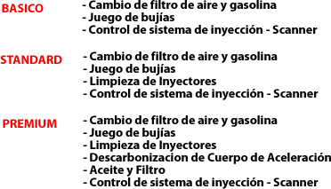 En todos los servicios se hace un control de todo el sistema de inyección,(sensores – instalación – cableado - mangueras - conectores).